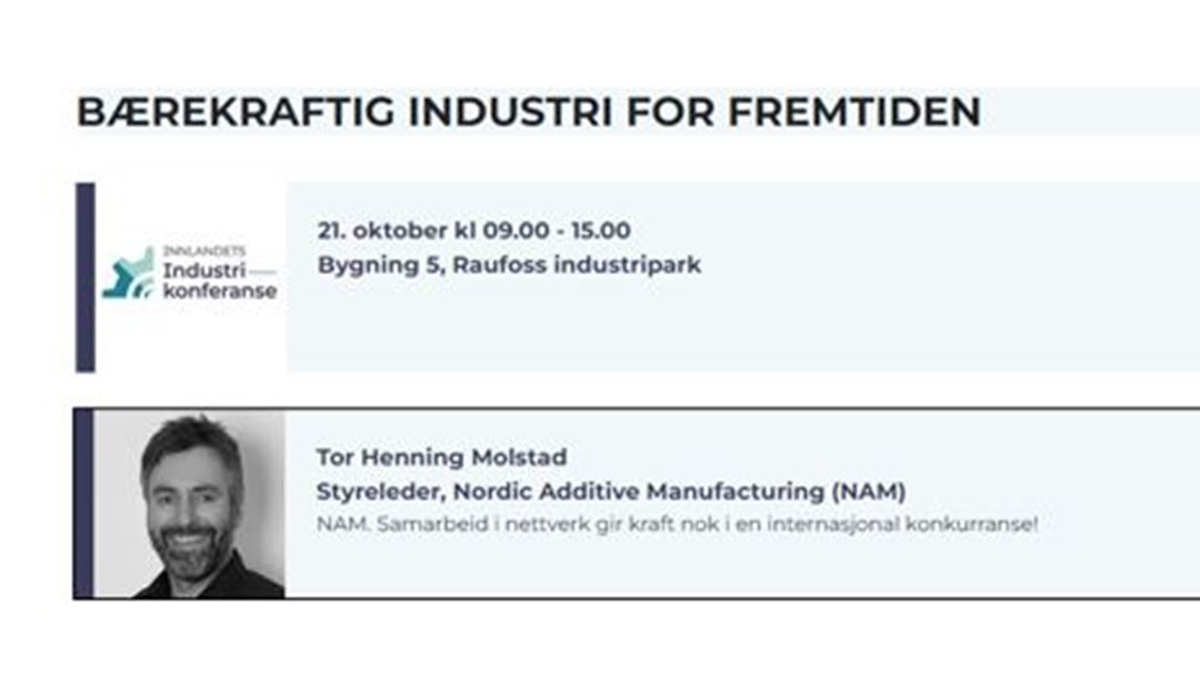 Mr. Tor Henning Molstad (Nordic Additive Manufacturing) presenting at the national industrial conference "INDUSTRY FOR THE FUTURE".