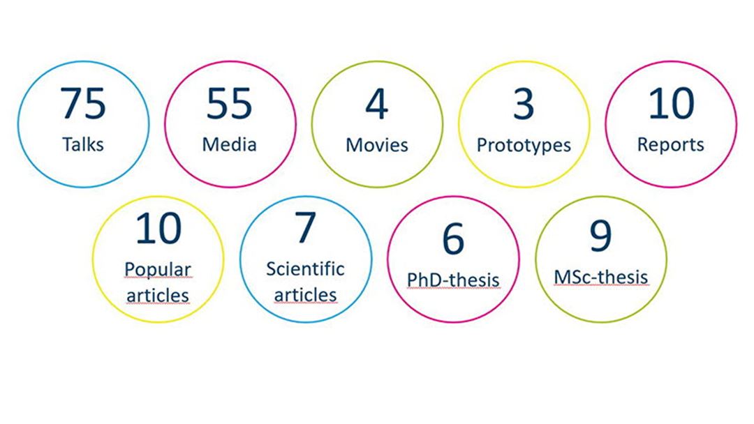 Det er formidlet 75 foredrag, 10 populærvitenskapelige- og 7 vitenskapelige artikler, 10 rapporter samt 1 bokkapittel fra prosjektet. I tillegg har kunnskapsplattformen bidratt til 55 mediesaker og produsert 4 filmer. Det er utviklet 3 prototyper av utstyr for taredyrking, en modell for produksjonspotensial og et beregningsverktøy for dimensjonering av sjøanlegg. Prosjektet bidrar til utdanning av 6 PhD-er og 9 MSc-studenter.