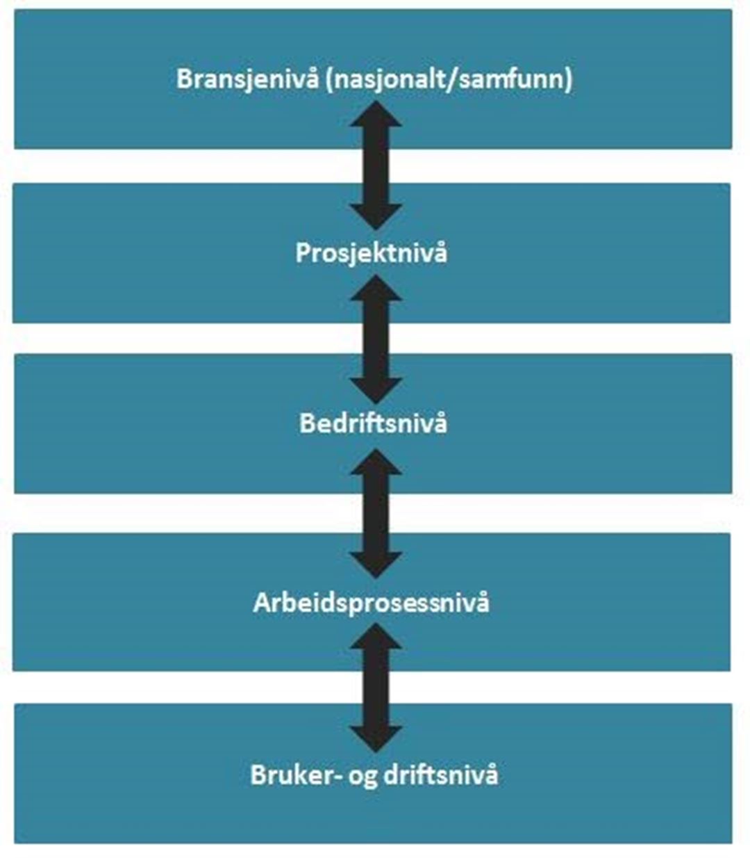 Grunnlaget for dette prosjektet ble beskrevet i et forprosjekt som ble levert i januar 2015. Forprosjektet engasjerte et stort antall representanter for næringen i arbeidet som har blitt gjennomført. Engasjementet og interessen for tematikken knyttet til prestasjonsmåling har vært stor, og det er enighet om at verktøy for prestasjonsmåling i næringen må etableres. Forprosjektet har avdekket at det er behov for prestasjonsmåling på flere nivå: Bransjenivå (samfunnsperspektiv), Prosjektnivå (måling på tvers av alle aktører som er med i et prosjekt), Bedriftsnivå, Arbeidsprosessnivå, og Bruker- og driftsnivå.