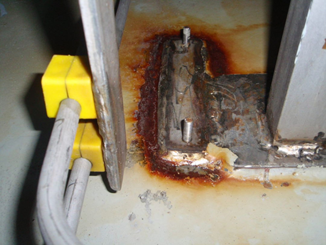 - Galvanisk korrosjon er viktigste årsaken, og skjer spesielt der rustfritt stål og kobberlegeringer er koblet direkte til karbonstål.