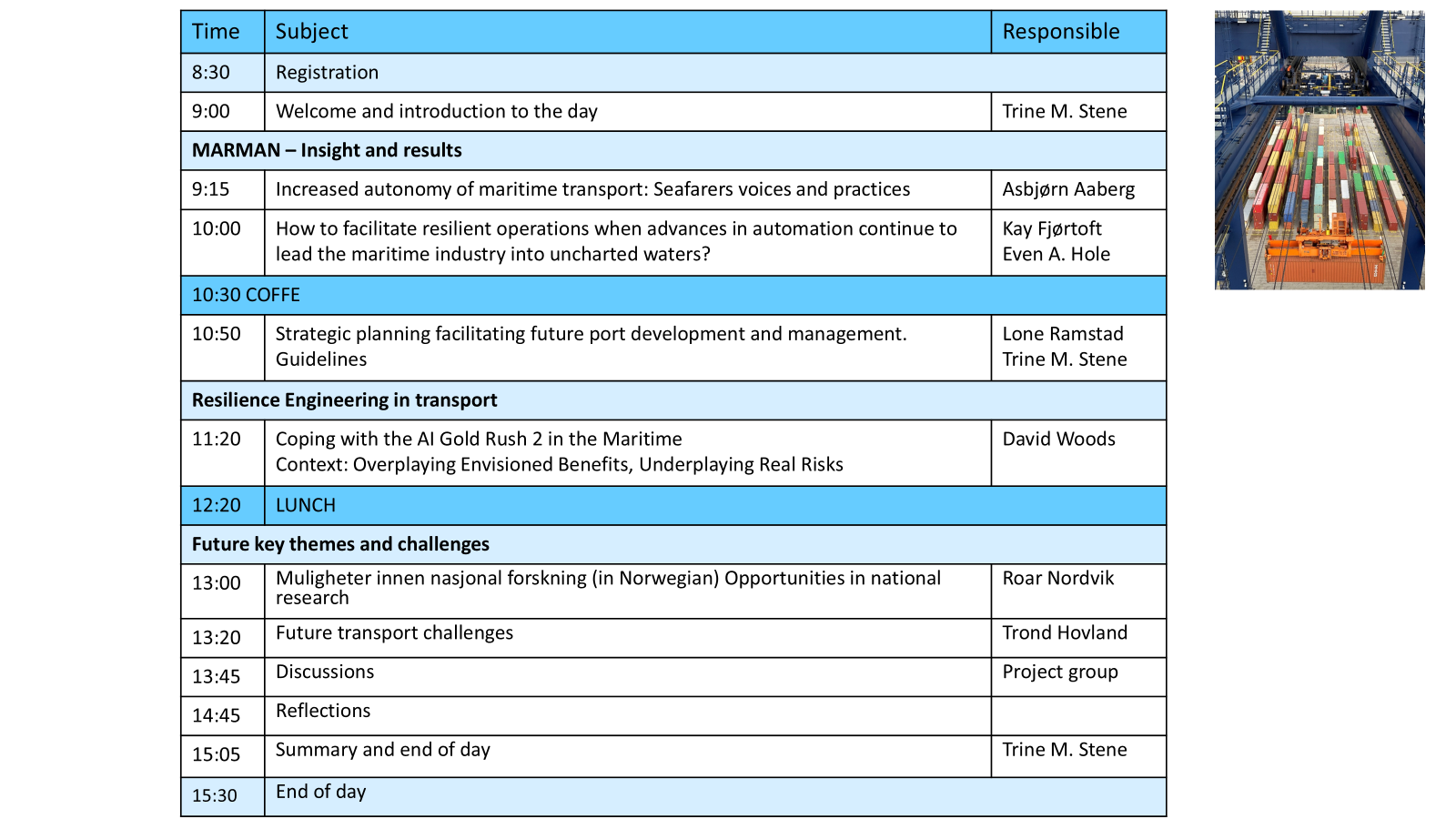 Seminaret ble arrangert som et samarbeid mellom MARMAN-prosjektet og Geminisenteret CERCIS