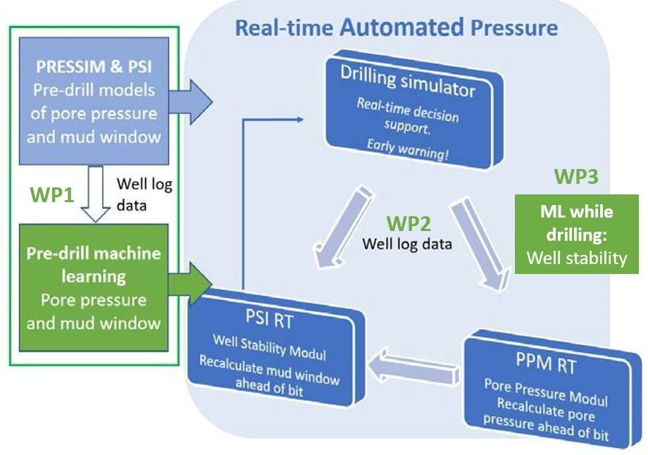 Målet med prosjektet er å kombinere fysikkbasert modellering og 3D-stokastiske trykksimuleringer med datadrevet maskinlæring for å forbedre arbeidsflyten for poretrykksprediksjon langs en planlagt brønnbane.