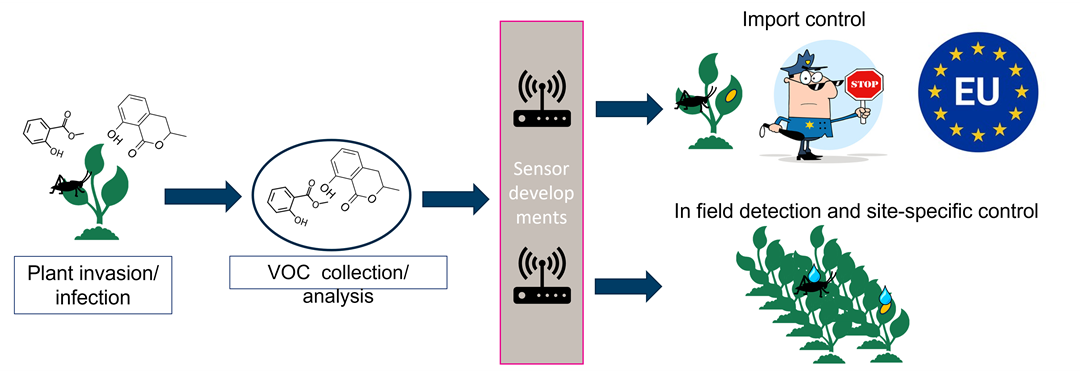 Invaderende planteskadegjørere, som insekter, sopp og andre organismer, utgjør en trussel mot trygg og miljøvennlig matproduksjon. Det er vanskelig å følge opp dagens regelverk for planteimport, som resulterer i at mange skadegjørere importeres som blindpassasjerer på planter. Planter som importeres er merket med et plantehelsesertifikat, men vurderingen av plantens helse er som regel basert på at planten «ser fin ut». Likevel kan det gjemme seg skadegjørere, som vi risikerer å importere. Luktstoffprofilen, det vil si sammensetningen av luktstoffene som planten utskiller, endrer seg når planten utsettes for stress, for eksempel når den angripes av en skadegjører. Angrep fra ulike skadegjørere gir ulike luktstoffprofiler.