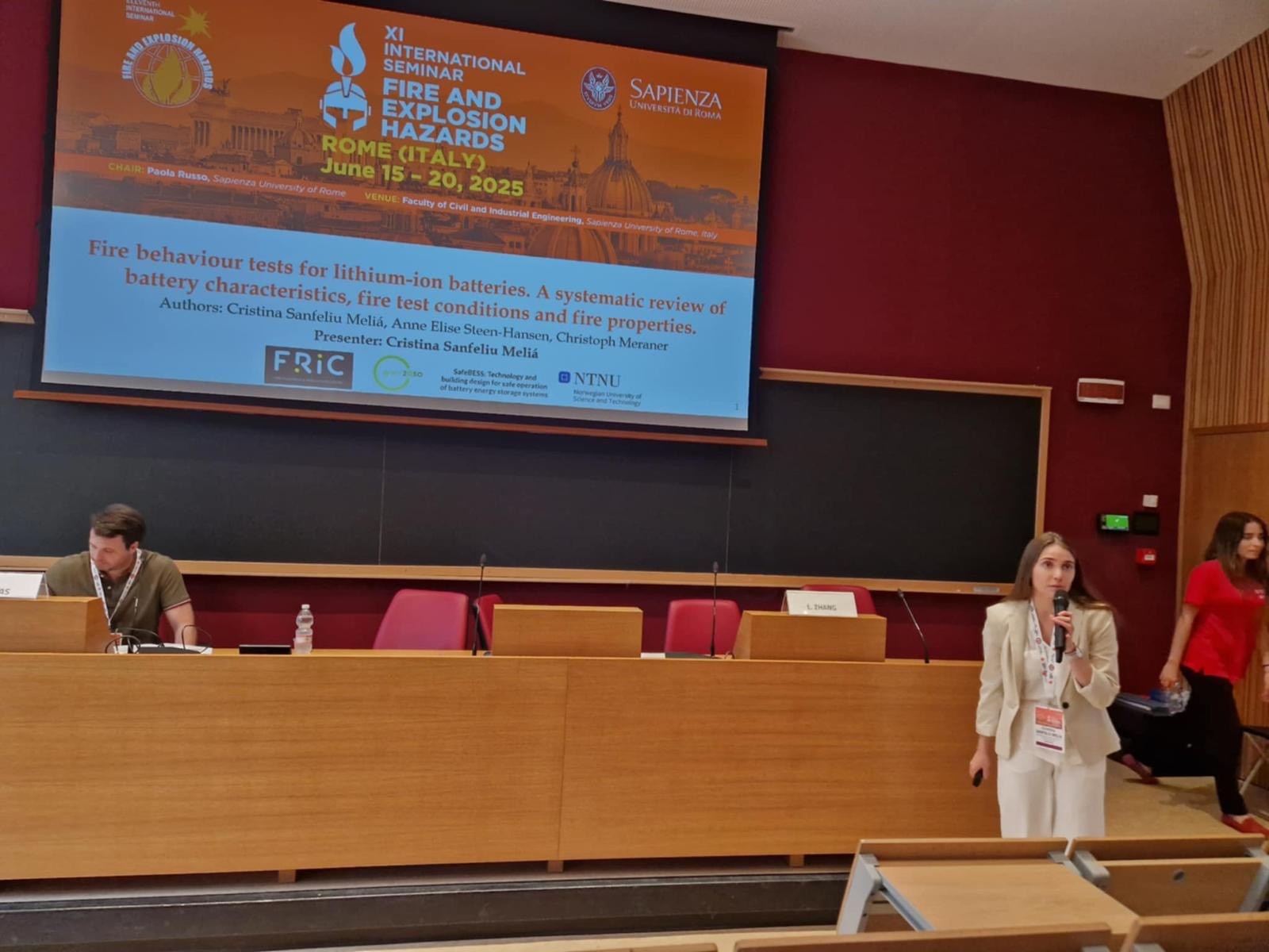 SafeBESS var representert med to muntlige presentasjoner under konferansen. PhD-kandidat Cristina Sanfeliu Melia presenterte sitt arbeid knyttet til brannegenskaper for Li-ionebatteri, hvor det blant annet er gjort en systematisk gjennomgåelse av batteriegenskaper, branntestbetingelser og brannegenskaper. Forsker og arbeidspakkeleder Brynhild Garberg Olsø presenterte resultater fra arbeidspakke 3 som har fokus på design av batterirom. Tema for presentasjonen var analyser av ventilasjonsparametere knyttet til å redusere eksplosjonsfaren i rom med Li-ionbatteri.