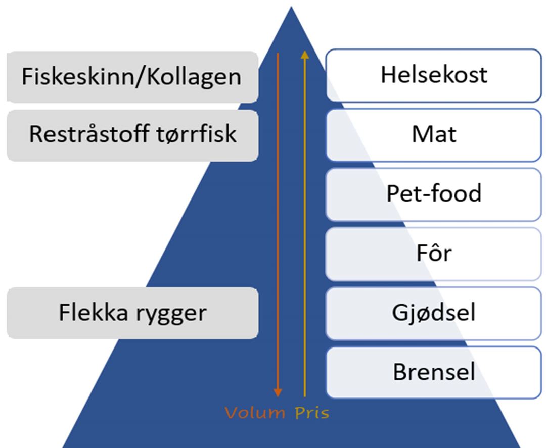 VOLUM-prosjektet har potensiale til å skape minst tre ulike produkter av ellers lite utnytta restråstoff: Fosforrikt gjødsel, kollagen og fiskesaus. Dette vil føre til verdiskaping for bedriftene, nærmere totalutnyttelse av fiskeressursene og bærekraftige, kortreiste kilder til etterspurte ingredienser.