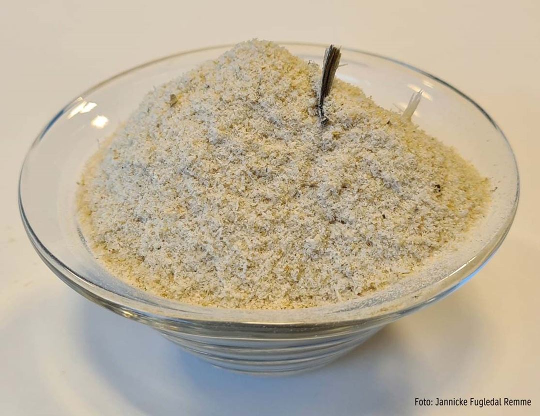 - Pulver, nakkebein, skadet fisk og utvannet restråstoff fra tørrfiskindustrien