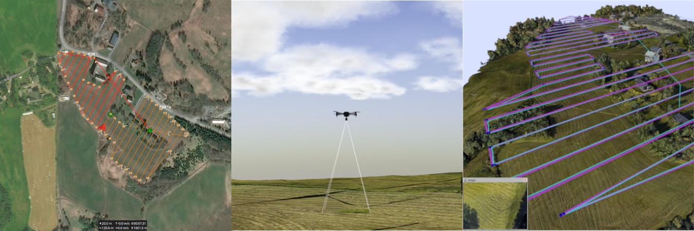 Vi bygger verktøy i ROS (Robot Operating System) for å simulere og visualisere inspeksjonsoppdrag. Dette gjør det mulig å verifisere droneflyvninger i simulering med autopilotprogramvaren «in the loop», som gjør hoppet fra simulering til feltflyvninger så smal som mulig.