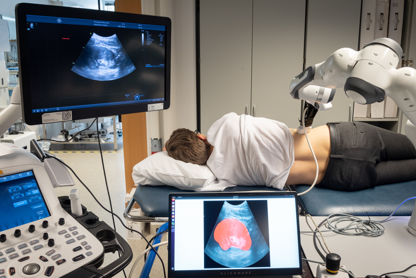 Vi vil vurdere nyrens evne til egenregulering av blodtilførsel ved å kombinere kontinuerlig målt arterielt blodtrykk med samtidige blodstrømmålinger i nyrearteriene. Dette vil vi oppnå ved å utvikle en løsning som kombinerer robotisert mykkroppsinteraksjon og KI-assistert medisinsk ultralyd.