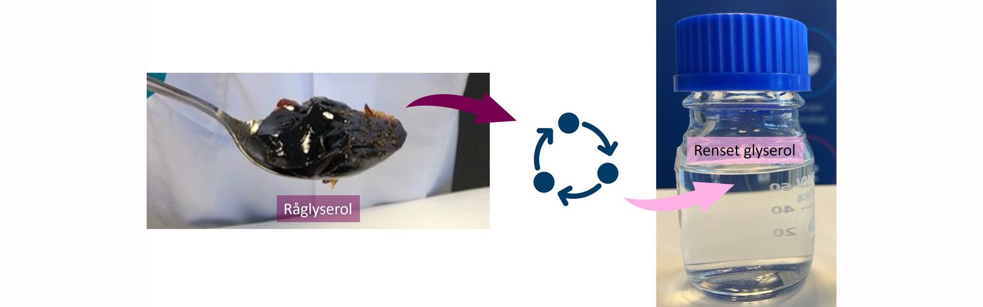Toppbilde: Råglyserol (venstre) og renset glyserol (høyre). Foto: SINTEF/Robert Wolff.