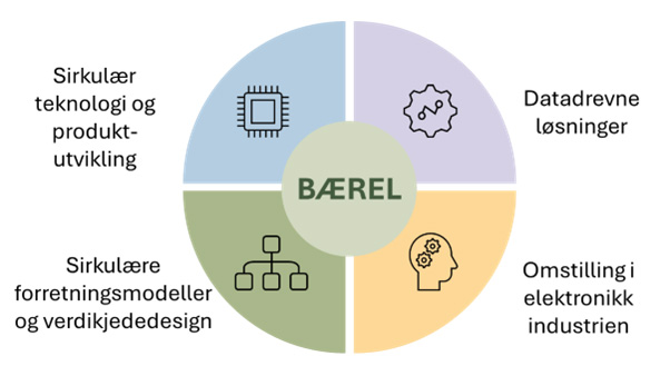 GP BÆREL skal akselerere den grønne omstillingen i norsk elektronikkindustri gjennom utvikling av en datadrevet og integrert verdikjede. Dette realiseres gjennom en digital plattform som støtter sømløs integrasjon fra design og produksjon til gjenproduksjon og gjenvinning, med tilbakemeldingssløyfer. Prosjektet dekker hele livssyklusen og fokuserer på avfallsreduksjon, samt økt grad av reparasjon, gjenproduksjon, gjenbruk og resirkulering, ved å utvikle løsninger for sirkulære og bærekraftige elektronikkprodukter, verdikjedeprosesser, forretningsmodeller og tjenester. Sirkulære løsninger skal styrke økonomisk bærekraft gjennom lavere kostnader og økt omsetninger; miljømessig bærekraft gjennom redusert avfall og høyere ressursutnyttelse; og sosial bærekraft gjennom tryggere arbeidsmiljø og kompetanseutvikling.