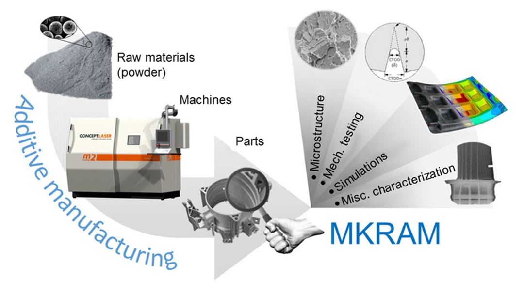 Når det gjelder materialer har MKRAM-prosjektet fokusert på utvalgte metallegeringer (verktøystål og nikkel-superlegeringer) og polymermaterialer (polyamid-12 med og uten forsterkning).