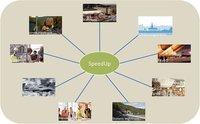 Prosjektet SpeedUp fokuserer på store komplekse prosjekter. Hovedmålet er å utvikle og teste kunnskapsgrunnlaget som kan bidra til reduksjon av den totale gjennomføringstiden i komplekse prosjekter med minimum 30 % sammenlignet med 2013-nivå som lar seg demonstrere i 3-5 prosjekt innen 2017.