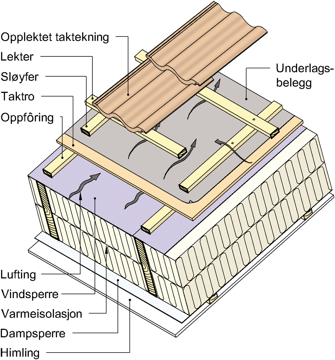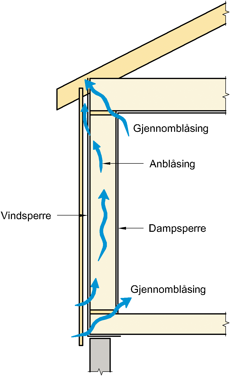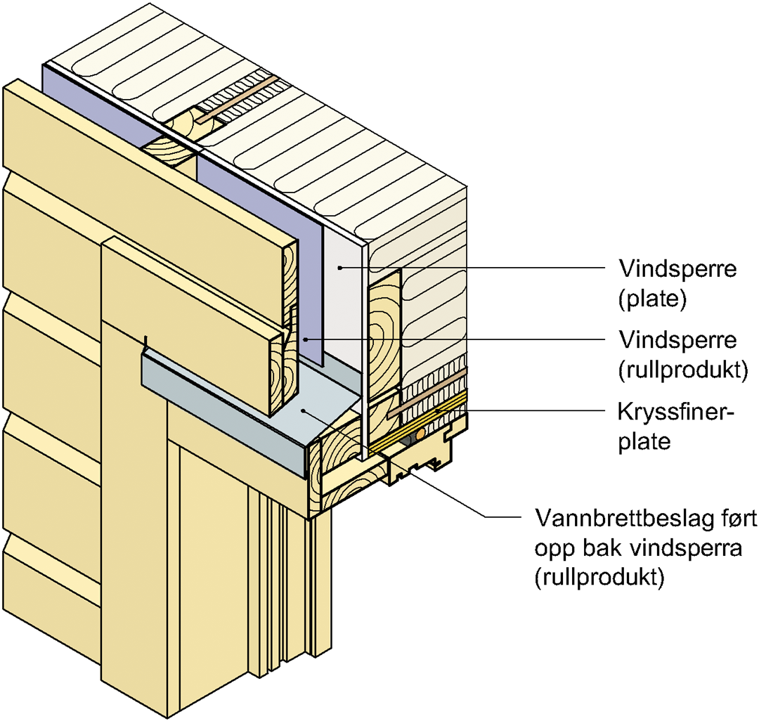 Innebygget fukt i konstruksjonen må ha mulighet til å tørke ut. Vindsperra bør ha så lav vanndampmotstand som mulig slik at overskytende byggfukt i bindingsverket kan tørke raskt ut.