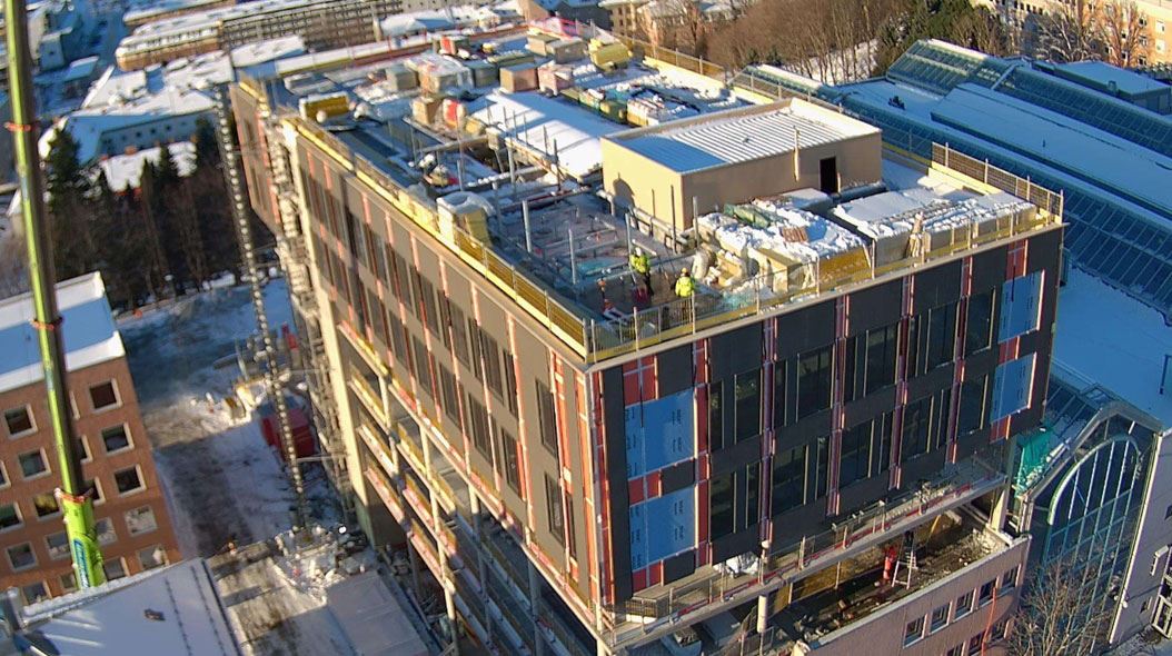 Taket over etasje 8. etasje er snart tett. Arbeidet har blitt noe forsinket på grunn av været. Det er viktig at det er tørt under isolasjonen, og entreprenør har brukt mye tid på å fjerne snø og is slik at underlaget er tørket før isolasjon legges. Forsinkelsen har ingen påvirkning for fremdriften totalt i prosjektet, og prosjektet gjennomføres i henhold til plan.
