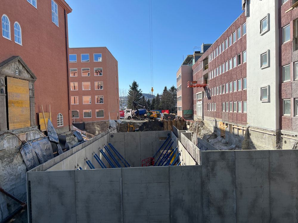 Arbeidet med kjelleren vil prege byggeplassen frem mot sommeren. Resterende tomt skal graves ut, og deretter blir vegger, og etter hvert etasjeskiller i kjeller montert. Det skjer stadige endringer på byggeplassen, så det kan være fint å ta seg en tur forbi om man har mulighet.