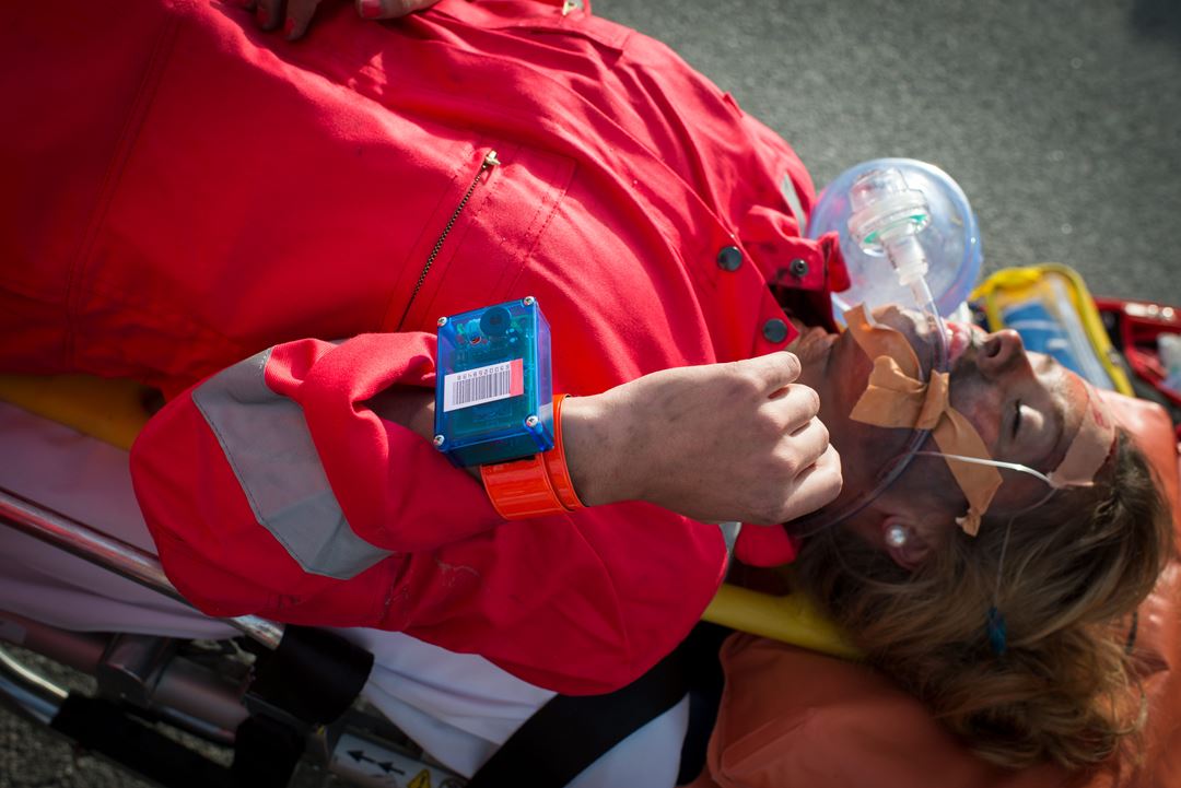 Det er det tyske forskningsinstituttet Fraunhofer som har laget et lite armbånd som festes på den skadde. Ved hjelp av ulike farger på båndet, kan hjelpemannskap markere grupper av pasienter etter skadenivå. Skadde med røde bånd på armen, haster det fore eksempel med å få til sykehuset.