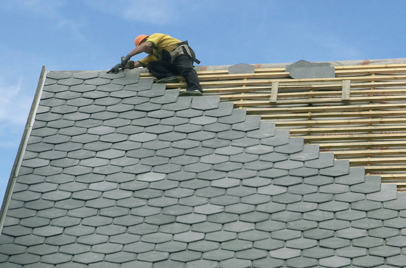 Det er også avgjørende at undertaket er vanntett og tåler vekten av steinen. Byggdetaljer 544.102 Tekking med takskifer viser derfor hvordan man beregner steinens egenlast.