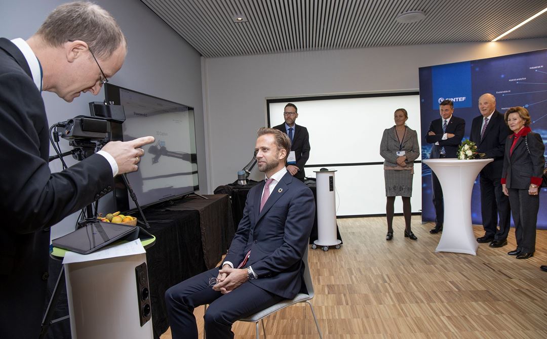 – Det er jo selvfølgelig litt morsomt å bli digitalisert som digitaliseringsminister, men det mest interessante er hva denne teknologien kan brukes til og hva nettopp utviklingen gjør og åpner opp av nye muligheter. Det er veldig bra at vi er her i dag på slovensk statsbesøk. Det viser SINTEFs posisjon som en ledende forskningsinstitusjon i Europa, sier Astrup.