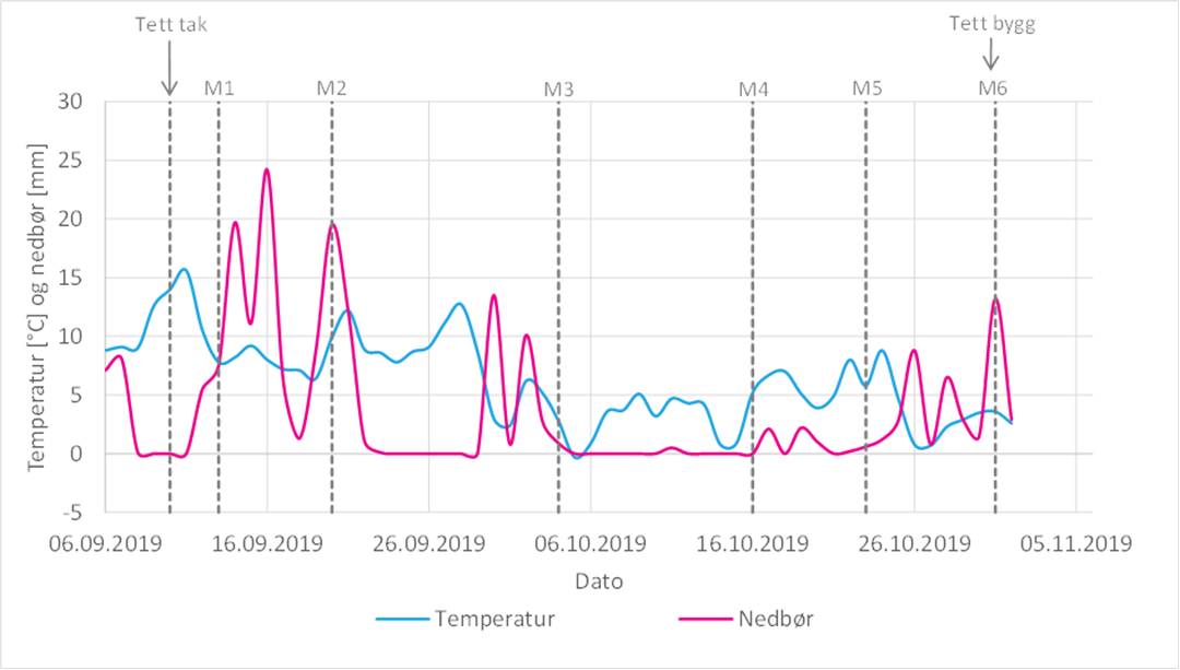 ZEB-laboratoriets hovedbæresystem ble reist i løpet av noen fine sommerdager 2019. Men de som kjenner trønderværet, vet at det er skiftende, så styggværsdagene kom etter hvert. Det var mange dager med nedbør i september og oktober før vi fikk tett bygg.