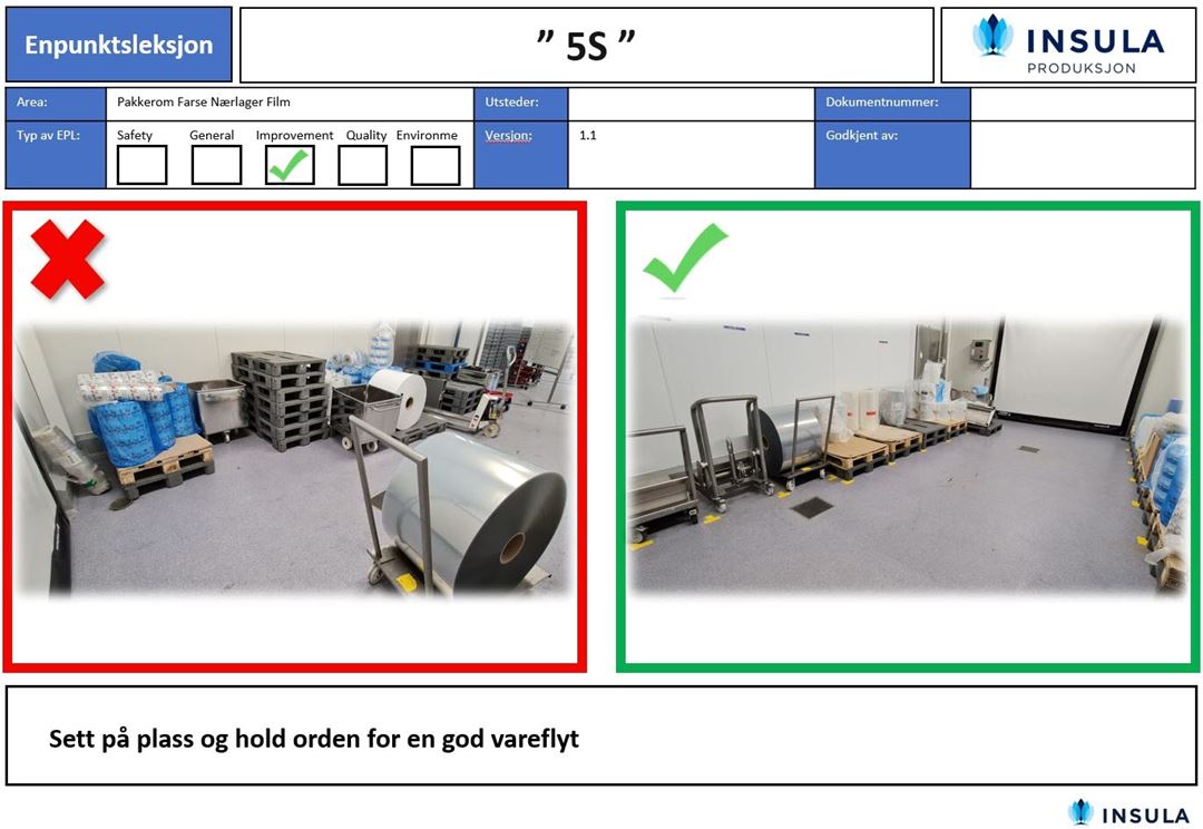 Under ser vi et eksempel på en 5S-standard utarbeidet som del av gruppeoppgaven. Innholdet på lageret er nøye vurdert, hensiktsmessig plassert og tydelig merket.