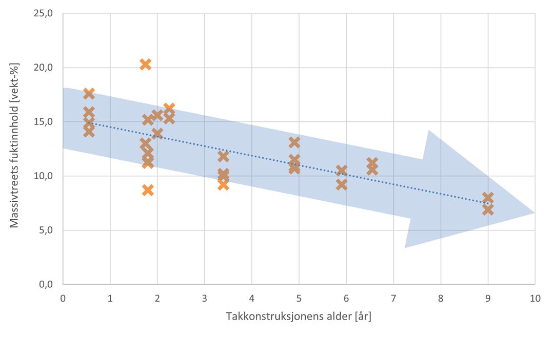 TPF har i samarbeid med SINTEF, med ekstra finansiering fra DiBK, gjort fuktmålinger på 17 tak fordelt på 13 bygg med kompakte massivtretak. Formålet var å undersøke hvordan byggfukt tørker ut over tid.