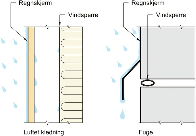 Prosjektering av luftede kledninger bør for eksempel tilpasses mengden regn og vind fasaden blir utsatt for. Fasadekledninger med plane plater brukes mye. Kledningstypen utføres av estetiske årsaker gjerne med åpne fuger, noe som gjør at mye regnvann ledes inn bak fasadesplatene.