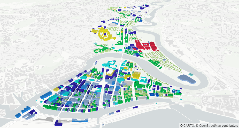 I Forskningssenter for nullutslippsområder i smarte byer (FME ZEN) jobber vi for tiden med et visualiseringsverktøy. Verktøyet skal bruke åpent tilgjengelig informasjon til å modellere energibruken i et område og lage framskrivinger for hvordan energibruken kan utvikle seg i ulike scenarioer som defineres i brukergrensesnittet. Verktøyet utvikles og testes ut for Kunnskapsaksen i Trondheim, som er et av flere pilotområder i FME ZEN.