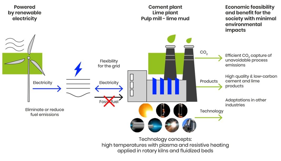 ELECTRA fokuserer på hvordan industrien kan produserer høytemperaturvarme, ved å kombinere bærekraft med uendret fleksibilitet og produktkvalitet. Løsningen legger til rette for en grønn omstilling, spesielt i sementproduksjon og andre prosesser der kalsiumkarbonat dekomponerer og CO₂ er et uunngåelig biprodukt.