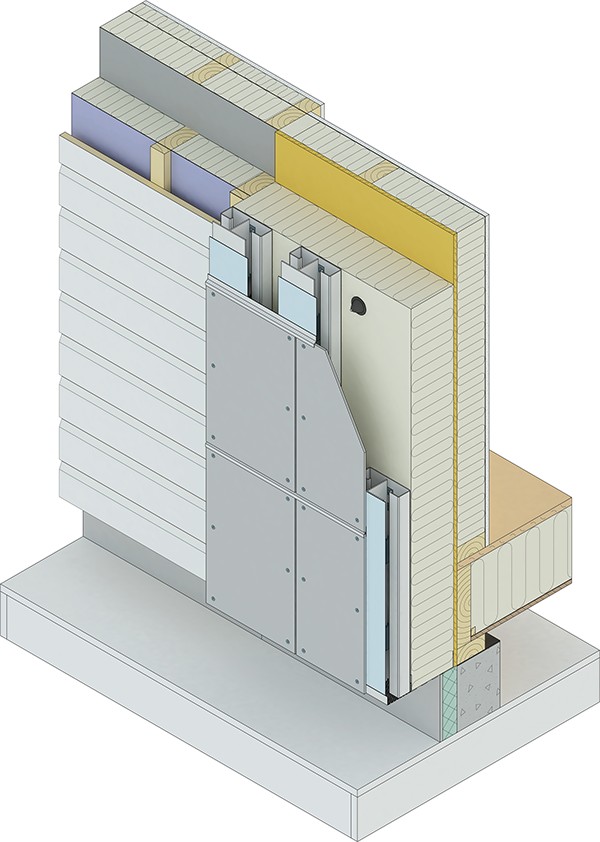 Vi har bygget en modell basert på løsninger fra Byggforskseriens anvisninger om Etterisolering av yttervegger av tre og Utvendig kledning med fasadeplater. Løsningene blir demonstrert på standen, eller du kan utforske modellen selv.