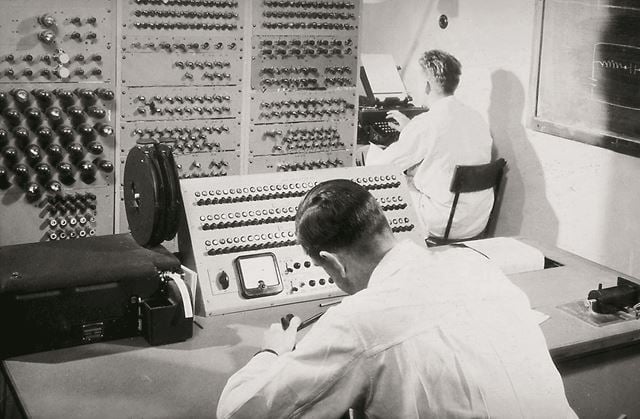 Etter krigen søker norske forskere inspirasjon og faglig støtte internasjonalt. De plukker opp nye trender og bruker kontaktene sine til å skaffe hjelpemidlene de trenger. Arbeidet med å bygge Norges første digitale datamaskin starter allerede i 1950 og resulterer i maskinen Nusse, som står klar ved SI i 1954.