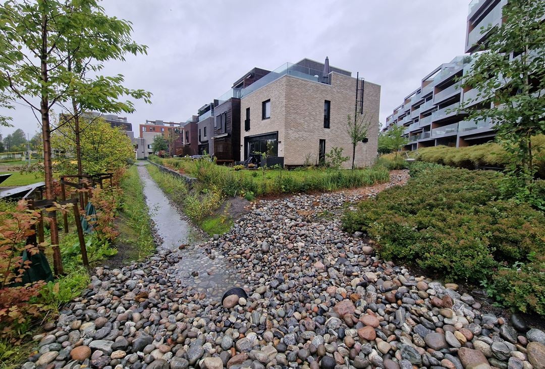 En del av løsningen er lokal overvannshåndtering. Blågrønne løsninger, også kalt naturbaserte løsninger, handler om å bruke naturens prosesser for å håndtere regn og overvann på overflaten og å la vannet være en ressurs i landskapet sammen med vegetasjon.