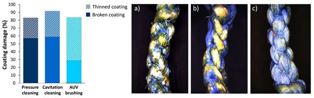 Bruk av vaskerobot viste seg å være mer skånsomt enn tradisjonell notspyling og kavitasjonsvask (en vannstråle som danner bittesmå bobler som imploderer). Forsøkene viste at robotbørstingen ga mindre skade og en jevnere slitasje på belegget.