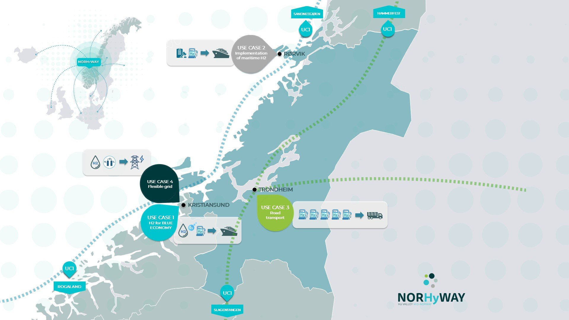 Gjennom en felles satsning mellom forskning, industri og regionale myndigheter skal EU-prosjektet NORHyWAY realisere Norges første storskala «Hydrogen Valley» som strekker seg fra Oslofjorden (Slagentangen) i sør til Hammerfest i nord. Satsingen skal demonstrere hvordan sammenkoblede hydrogenverdikjeder i industriell skala kan realiseres, med fokus på maritim sektor, landbasert transport og kraftsystem.