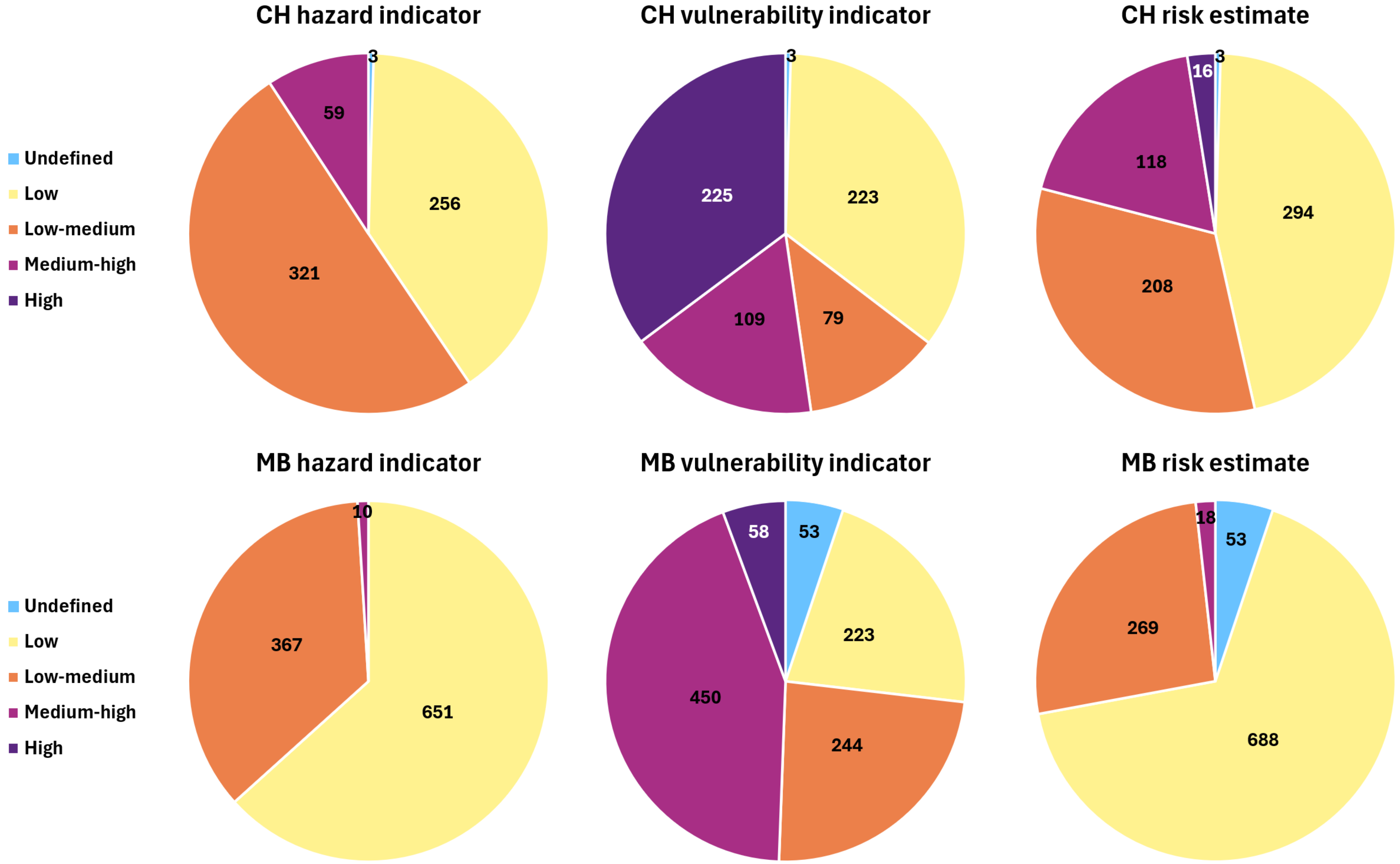 I PermaRICH utviklet vi en indikator som kombinerer resultatene fra permafrostrelatert fareanalyse og sårbarhetsvurdering. Risikoestimatet er kvalitativt og relativt. Det er en måte å oppsummere informasjonen på, for å utfylle lokal kunnskap og andre forvaltningskriterier når konkrete tiltak prioriteres.
