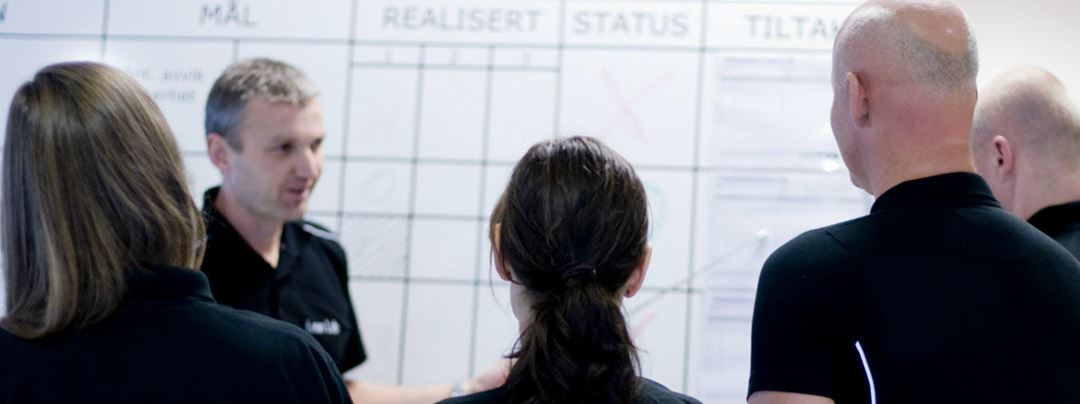 Kurset ble avholdt i Lean Lab sin produksjonssimulator, og veksler mellom teori og praktiske gruppeoppgaver. Deltakerne jobbet der med Forbedrings-Kata, som innebærer:
