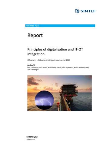...digitalisation, status and challenges, and how this development should be managed going forward. This report is one of six SINTEF reports from the project entitled: “ICT security – Robustness in the petroleum sector 2020”. The project has obtained knowledge pertaining to risks, vulnerabilities, and ICT security...