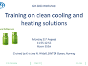 ...the ICR 2023 in Paris this year, with the topic Training on clean cooling and heating solutions. The 1-hour seminar was chaired by Kristina Widell and was a joint effort between the projects CoolFish, ENOUGH, INDEE+ and ACES., and contained the following presentations: Armin Hafner: How to select the...