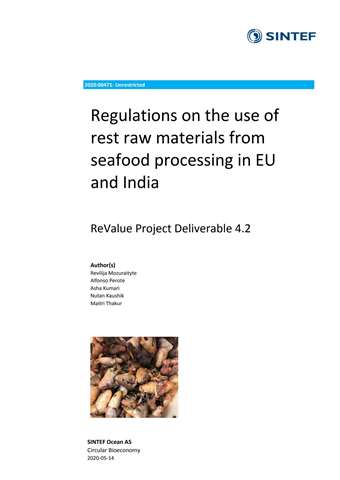 Technological solutions for production of protein and lipid rich fractions from whitefish RRM - Deliverable 3.1