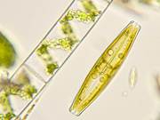 Mikroalger kan vise seg å være en smart klimaløsning. Dette er kiselalger under mikroskopet. Denne algen er i slekt med algene som skal brukes ved Finnfjord Smelteverk. Sistnevnte er...