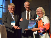 CCS Award for 2017 ble tildelt May-Britt Hägg fra SINTEF. Nils Røkke, direktør for bærekraft i SINTEF til venstre og dekan ved NTNU Øyvind Gregersen- i midten. Foto: SINTEF....