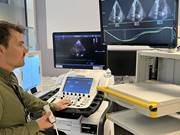 Forsker Andreas Østvik i SINTEF demonstrerer utstyret som bruker kunstig intelligens til å høste erfaring fra tidligere pasienter. Slik kan legene foreta en avgjørelse med utgangspunkt...