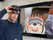 Manuel Oliveira er forsker i SINTEF og leder det nye spinoff-selskapet KIT-AR. Her demonstrerer han teknologien som blant annet kan gi deg ny kunnskap, akkurat når du trenger den. Foto: Thor...
