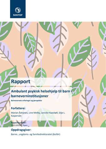 Rapporten presenterer resultater fra en kvalitativ undersøkelse av ambulant psykisk helsehjelp til barn i barnevernsinstitusjoner, gjennomført i januar/februar 2023. Det er gjort intervju med ledere og helseansvarlige i 18 institusjoner over hele landet og regionalt helseansvarlige i fire av fem...