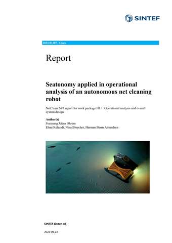 This report presents an analysis of the autonomous cleaning operations handled in the NetClean 24/7 project. The analysis was conducted using the Autonomous Job Analysis (AJA) concept introduced in the Seatonomy method. This includes the identification of the autonomous capabilities that a...