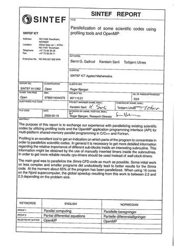 The purpose of this report is to exchange our experience with parallelizing existing scientific codes by utilizing profiling tools and the OpenMP application programming interface (API) for multi-platform shared-memory parallel programming in C/C++ and Fortran. Profiling is a very good tool to...