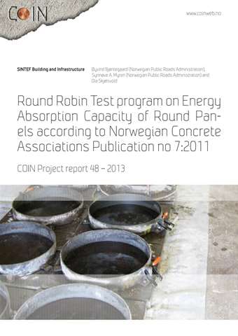 A Round-Robin test program (inter-laboratory study) on energy absorption capacity of round panels is presented. The panels were tested according to the procedure described in Norwegian Concrete Associations Publication no. 7, 2011 (NB 7:2011). Four laboratories participated in the program: o SINTEF...
