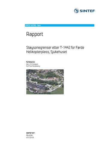 SAMMENDRAGDet er gjennomført beregninger av støysoner for helikopterlandingsplassen ved sjukehuset i Førde i henhold til retningslinje T-1442 fra Miljøverndepartementet. Det er forutsatt at helikopterlandingsplassen flyttes noe vestover i forhold til den som eksisterer i dag. Beregningene er utført...