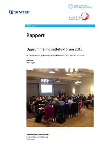 Oppsummering settefiskforum 2015 NCE Aquaculture og Skrettings settefiskforum 21.og 22. september i Bodø