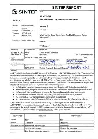 ARKTRANS The multimodal ITS framework architecture Version 6