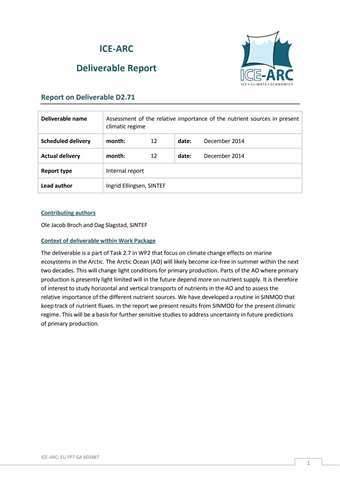 The Arctic Ocean (AO) will likely become ice-free in summer within the next two decades. This will change light conditions for primary production. Parts of the AO where primary production is presently light limited will be controlled also by nutrient availability in the future. It is therefore of...